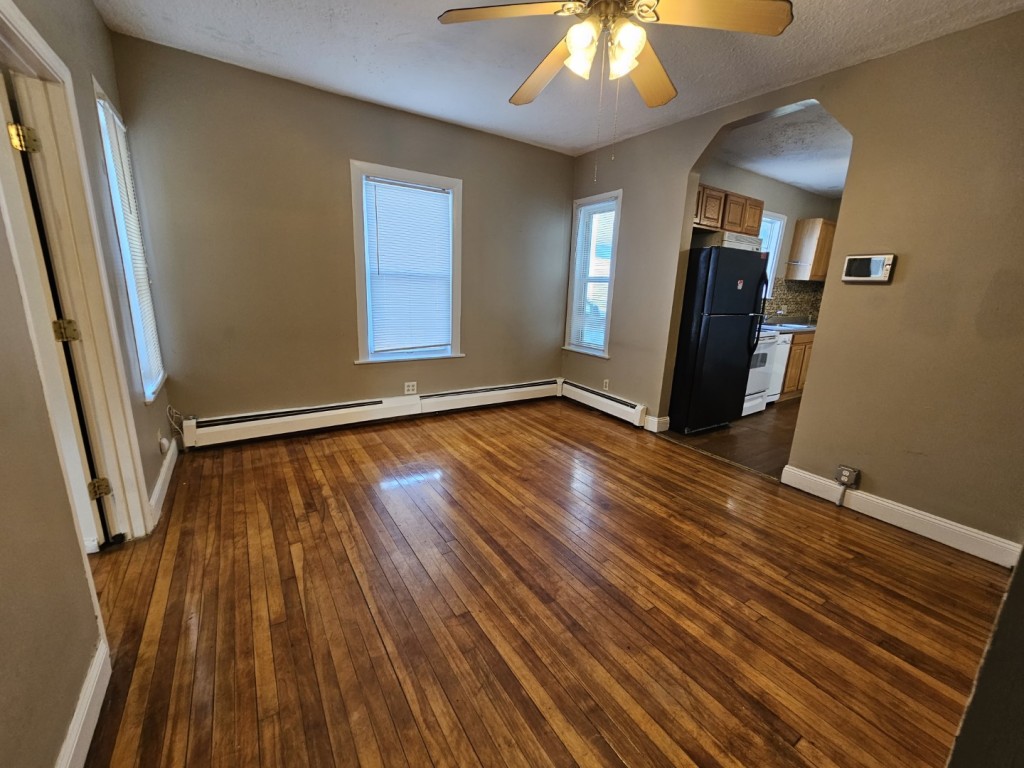 Newly renovated three bedrooms two baths: a very good size living room and eat in kitchen. New high efficient heating systems, new windows. All new bath, new appliances which includes refrigerator, stove, stove, microwave, off street parking, free washer dryer in the in the basement.